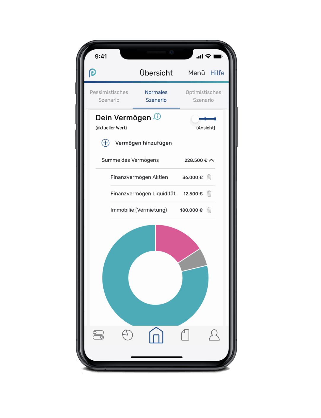 Genauso einfach kannst du Informationen ergänzen, wenn du bereits Vermögenswerte besitzt, (z.B. Aktien, Anleihen, Liquidität, Fonds, Immobilien).